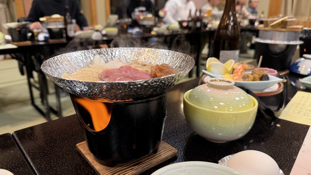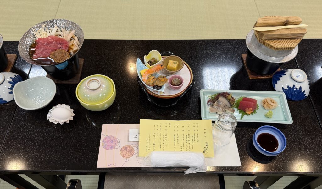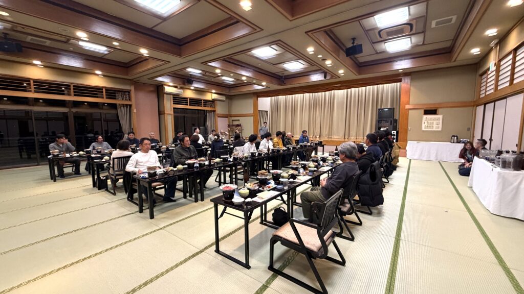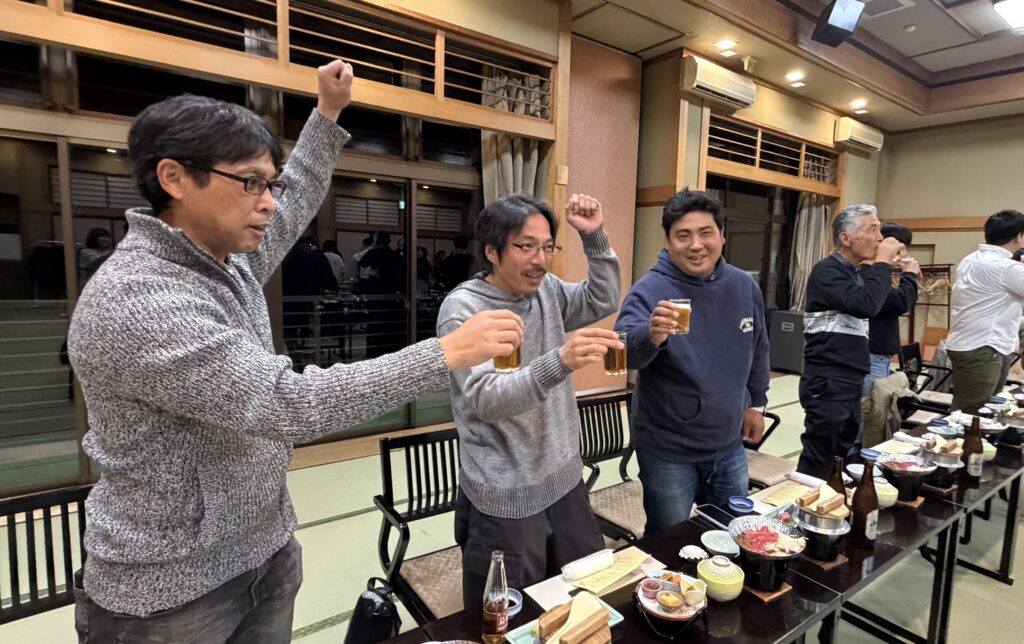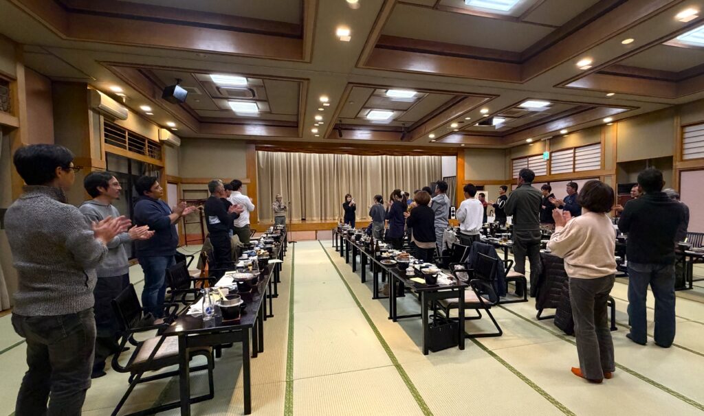 毎年恒例の忘年会。今年は飯田市下久堅にある「花薫る宿 よし乃亭」さんで開催しました。ステージ付のとても広いお座敷をご用意していただき、ゆったりとした贅沢な時間を過ごすことができました。