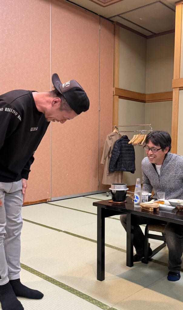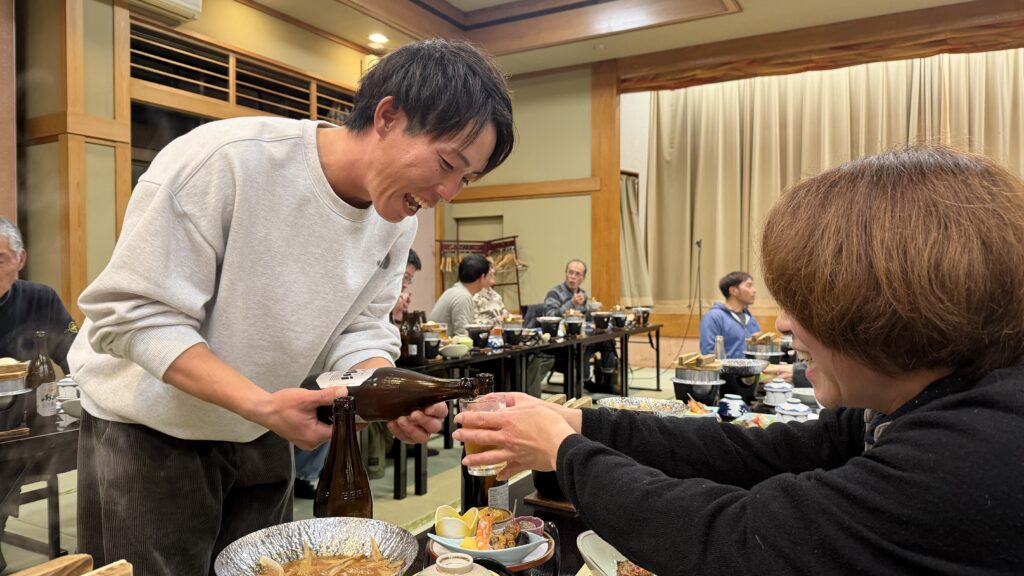 若手の新入社員が挨拶回りをしてくれました。(お酌なんて全くしなくていい社風なのに、瓶ビール片手に皆さん気を使ってくれています。)