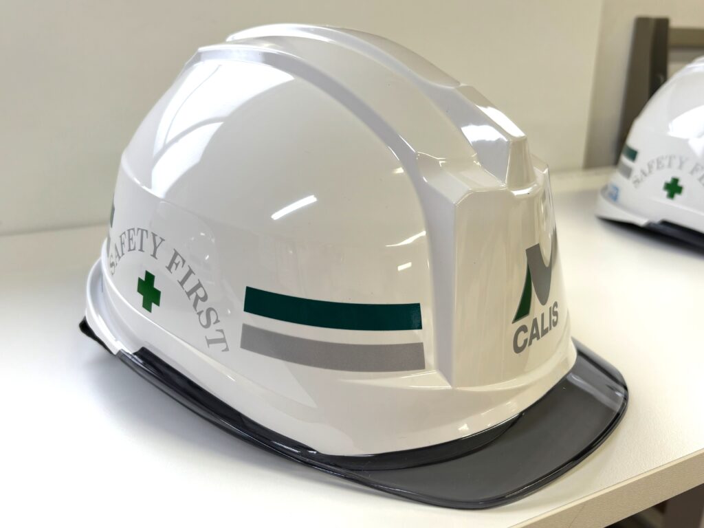 建設現場では重機の運転や高所での作業、工具の使用時など、多くの危険が存在しているため、適切な作業着や保護具を着用することが大切です。その中でもヘルメットは命を守るために最も重要なアイテムとなります。カリスではヘルメットの着用を徹底しているので、夏でも快適に着用できるよう遮熱性能と通気性の良いヘルメットにしました。